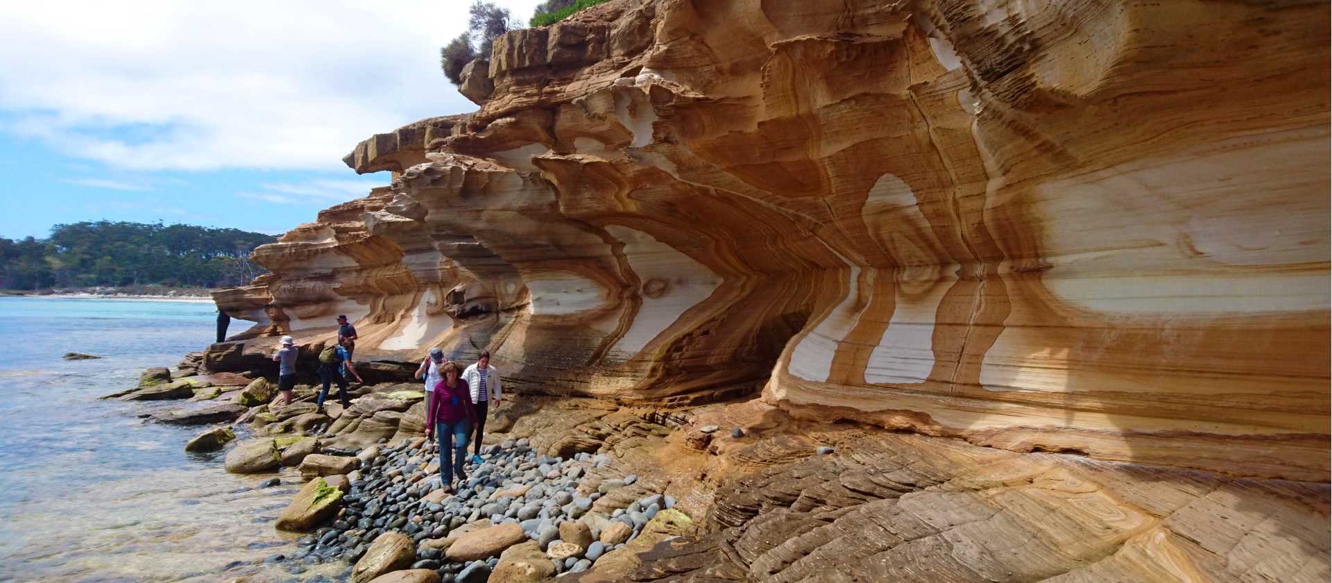 We will collect you from your accommodation in Launceston between 8-8.30 am. Our guides will call you the day before to confirm exact time and location. Our first stop in the morning will be for a briefing, where your guides will present an overview of the trip and distribute any pre-requested hire gear. We then drive an hour from Launceston through picturesque farming country and past Tasmania’s second highest peak, Legges Tor. Arriving in Fingal we hop on our bikes and cycle up the valley and through the wonderful eucalyptus forests of the North East. The highlight is an exhilarating ride down St Mary’s Pass to the dazzling aqua blue waters and white sandy beaches of the East Coast. In the afternoon we cycle south along the coastline towards the seaside fishing village of Bicheno, with a possible stop at the superbly located Ironhouse Brewery. Cycling distance: 42km (Fingal to Ironhouse Brewery). Please note that all cycling distances listed in these notes are approximate and your guides may offer more or less cycling depending on timing and weather.